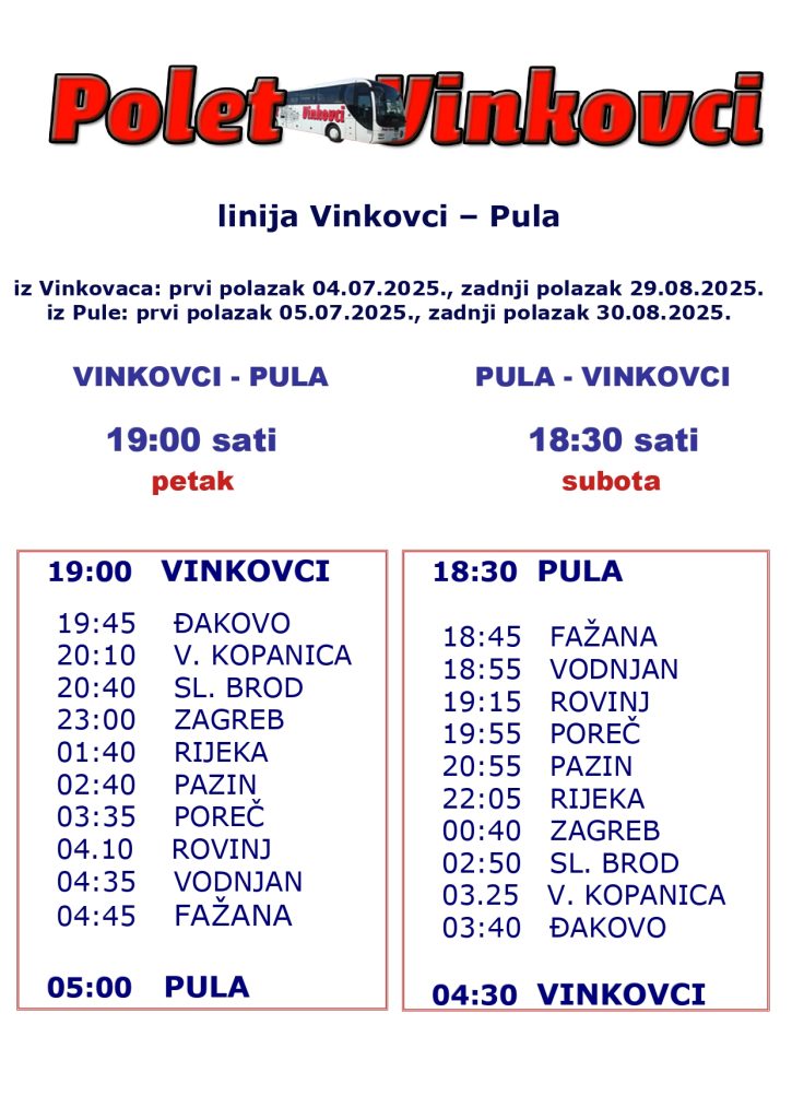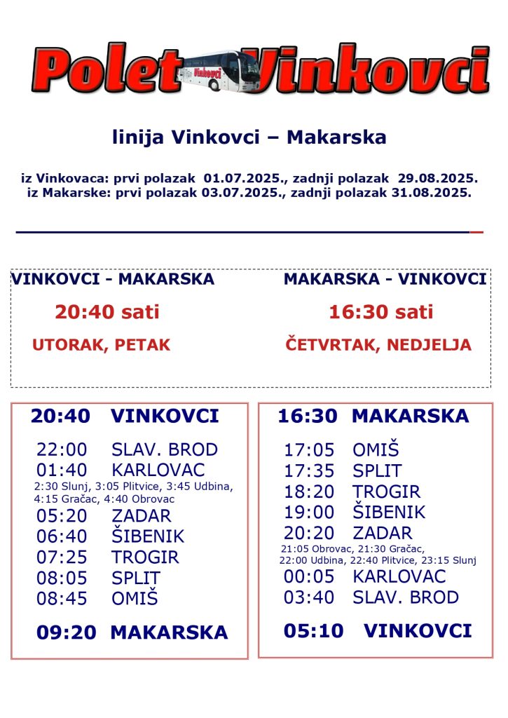VINKOVCI – MAKARSKA i VINKOVCI – PULA